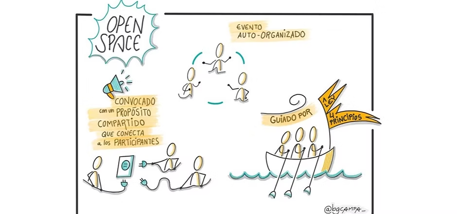 Un Open Space es un evento auto-organizado, convocado mediante un tema central que permite conectar a los participantes.